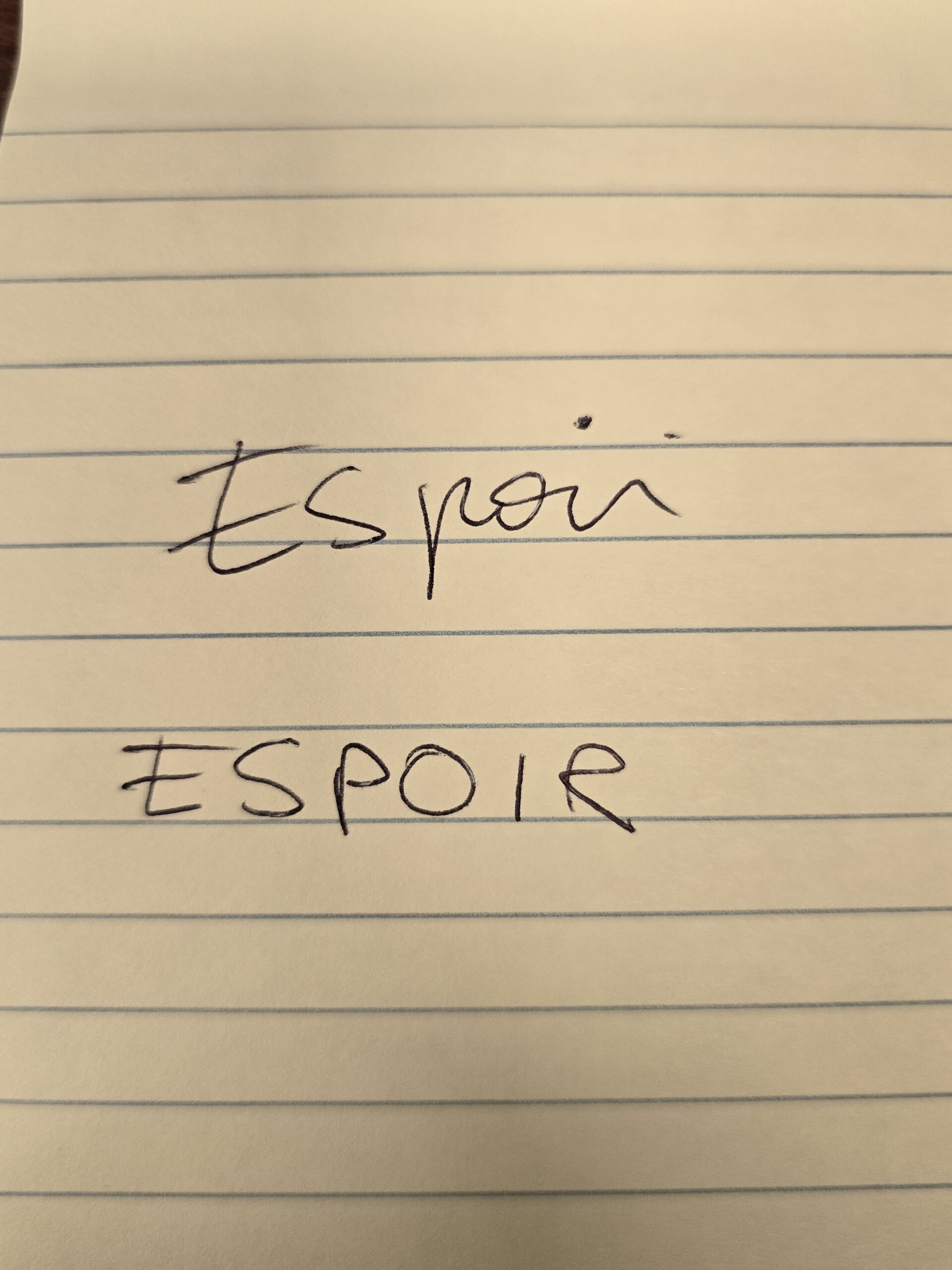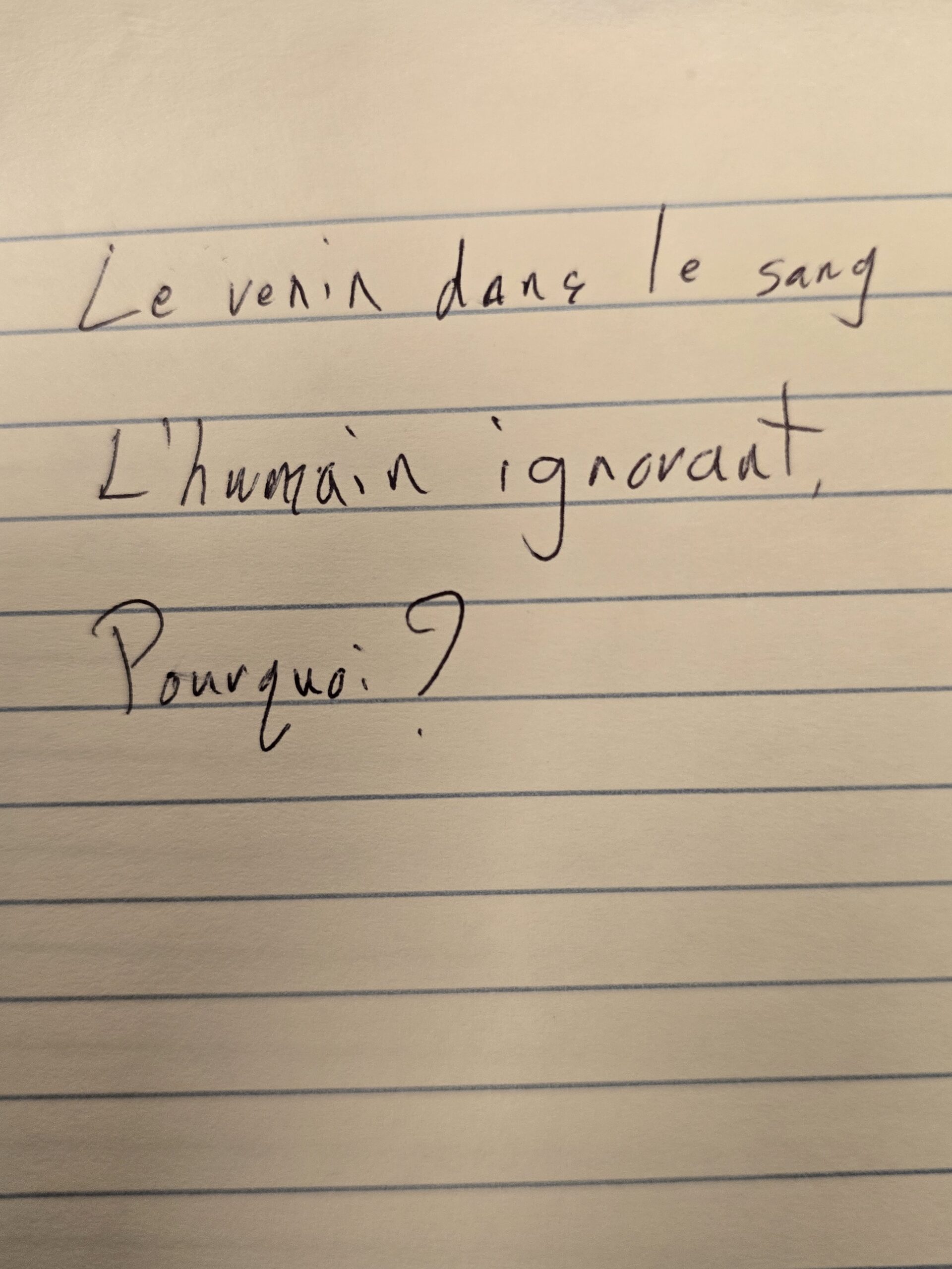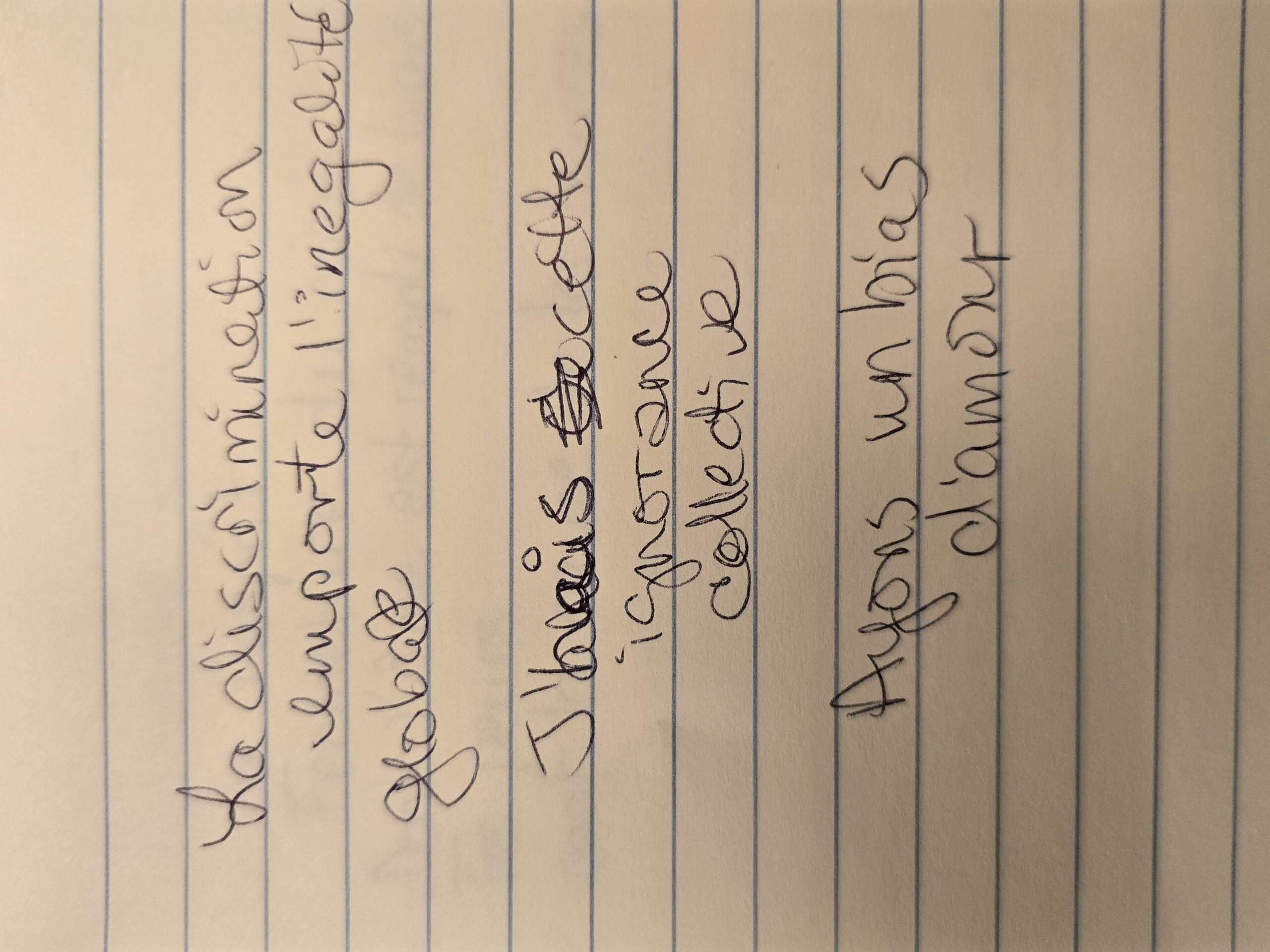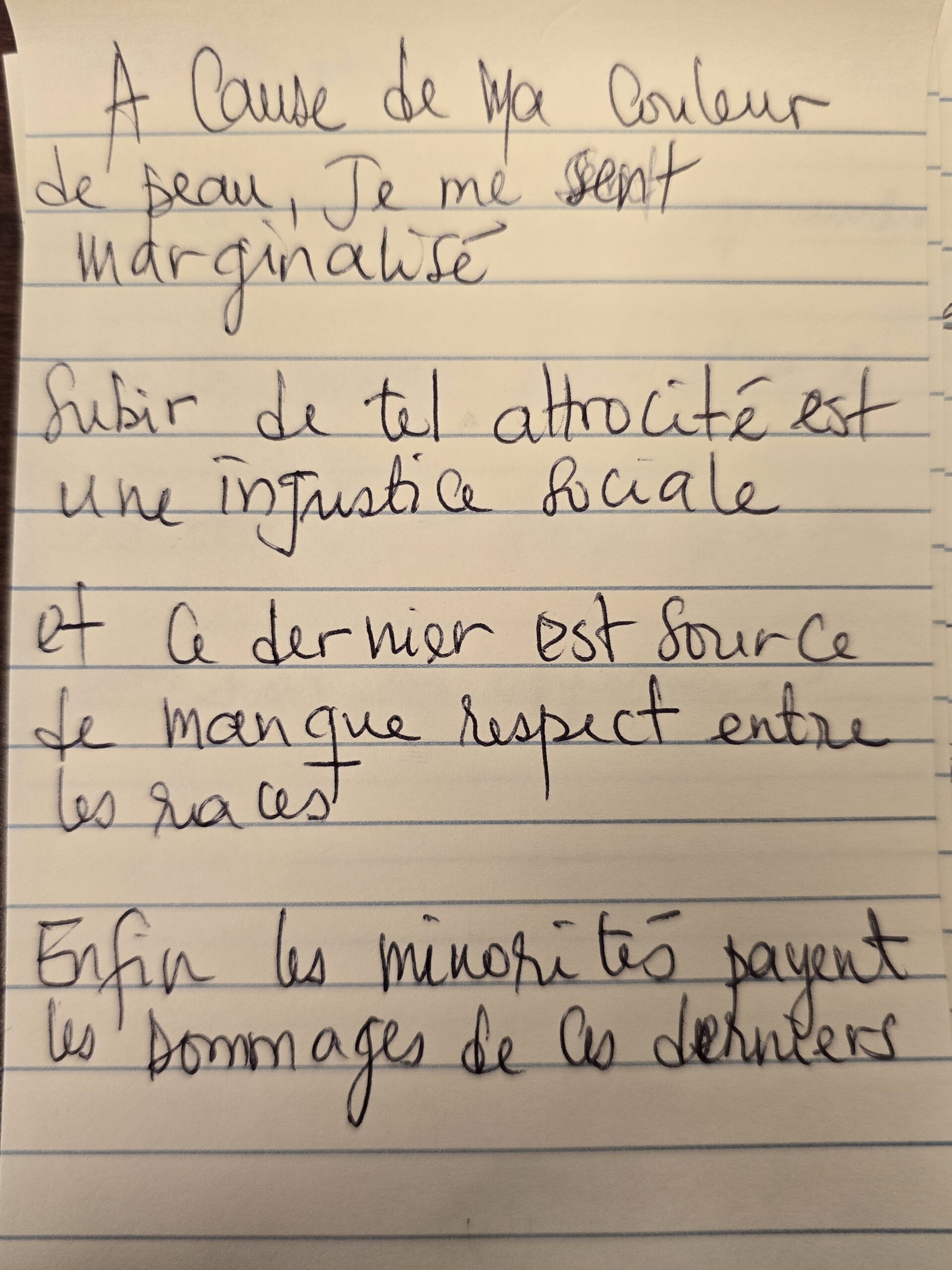 Nous avons invité les participant·e·s à écrire des mots qui leur venaient en tête autour des thématiques de la pièce, puis à en choisir trois ou plus — parmi les leurs et ceux des autres — afin de créer de courts micro-poèmes.