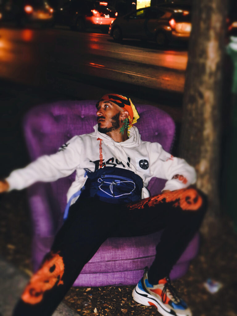 Véloce André, a versatile artist from Hawkesbury, Ontario, is known for his clothing brand 4CiD R4BBiT and his involvement in a collective of visual artists in Kingston.