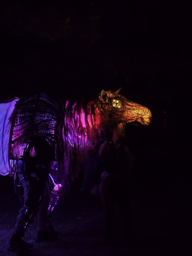 Les soirs des 7, 8 et 9 août, le parc MacDonald s’est transformé en un royaume magique grâce au spectacle immersif Le Roi Boréal de L’Imagier Vivant. Les spectateurs ont suivi Borée, une majestueuse marionnette géante incarnant les vents du nord, dans une déambulation poétique à travers les arbres. Entre ombres chinoises, jeux de lumière, les essences et les odeurs de la nature. et atmosphère sonore envoûtante, cette expérience multisensorielle a fait voyager le public à travers les saisons.